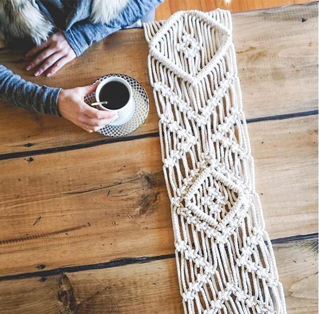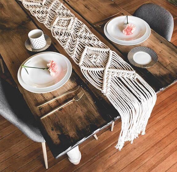 Upgrade your home décor with this beautifully handcrafted Boho Macramé Table Runner, meticulously woven from high-quality natural cotton rope. Featuring an elegant geometric pattern and long fringes, this macramé piece adds a warm, artistic, and luxurious touch to any setting.