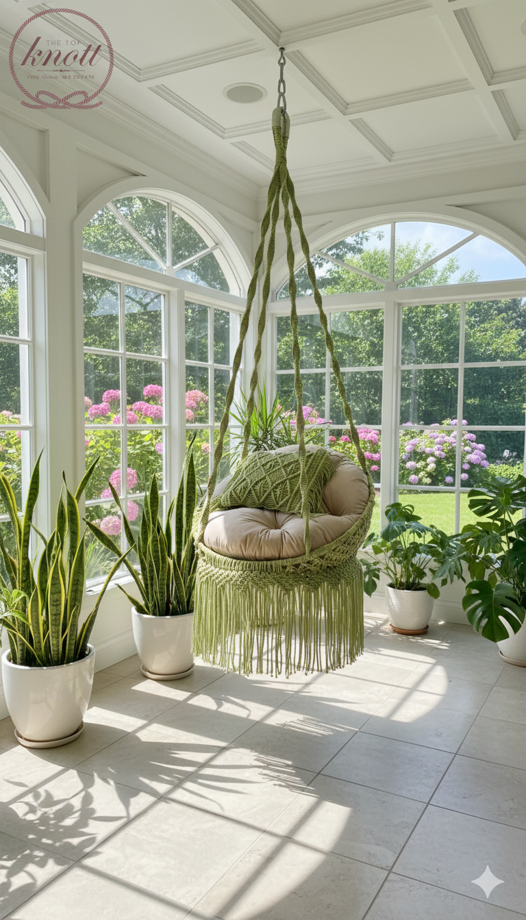 Macrame Swing Chair with Floral Cushion and Ottoman – The Top Knott