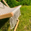 The macrame sling is made from durable synthetic cord, resistant to wear and tear, and ideal for both indoor and outdoor use. It’s also washable, so you can keep it looking fresh with minimal effort. Offering exceptional back support, this chair is perfect for reading a book or enjoying a refreshing drink in comfort.