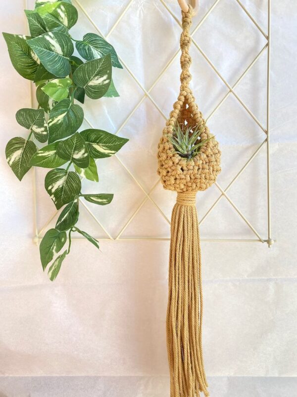 Bring nature indoors with this mini macrame air plant hanger, a stylish and compact way to display your favorite air plants. Each hanger is handmade with care using 100% natural cotton cord, ensuring an eco-friendly and durable design. Choose from a variety of beautiful colors—just refer to the color swatches at the end of the image gallery to find your perfect match.