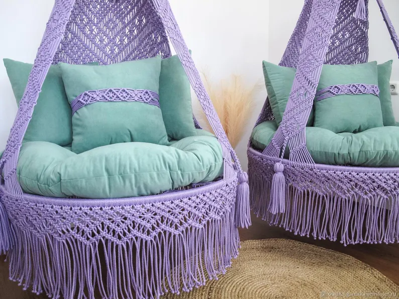 Handmade Macrame Swing Chair with Cushions – Boho Indoor Hammock