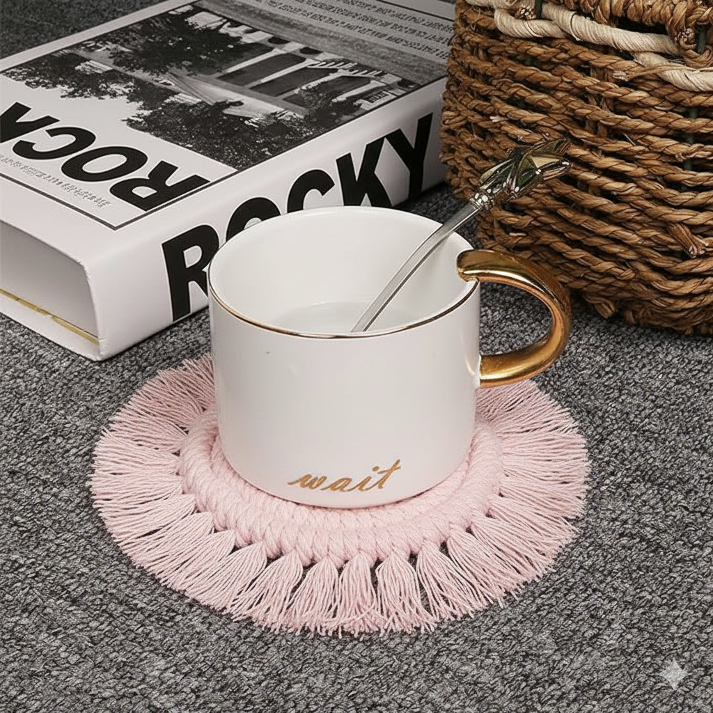 Brighten up your table with our Pink Macrame Round Coasters, beautifully handcrafted from 100% cotton cord. These chic, boho-style coasters protect your surfaces while adding a warm, playful touch to your décor. Perfect for dining tables, coffee corners, or gifting.