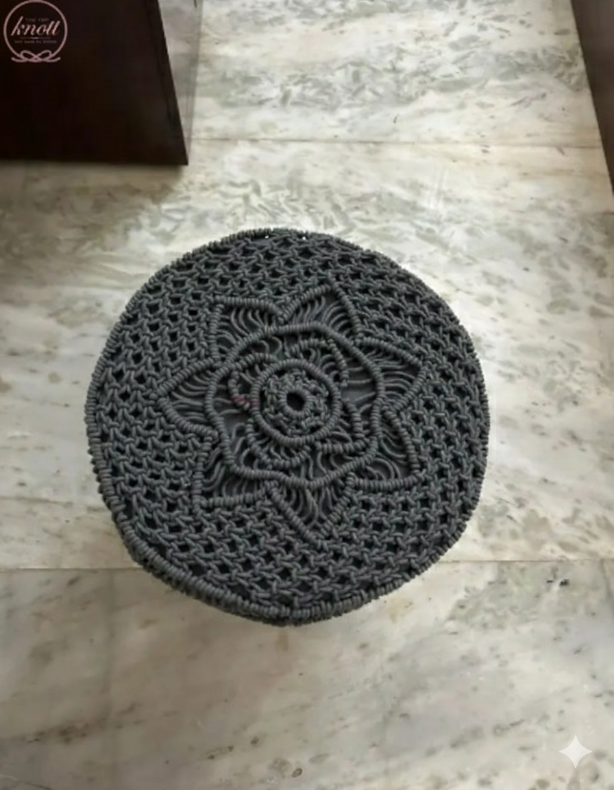 Bring modern elegance and handcrafted charm to your home with The Top Knott Handcrafted Black/Grey Macramé Round Stool. Designed for style, stability, and versatility, this unique piece features a beautifully woven macramé pattern that adds texture and depth to any room.