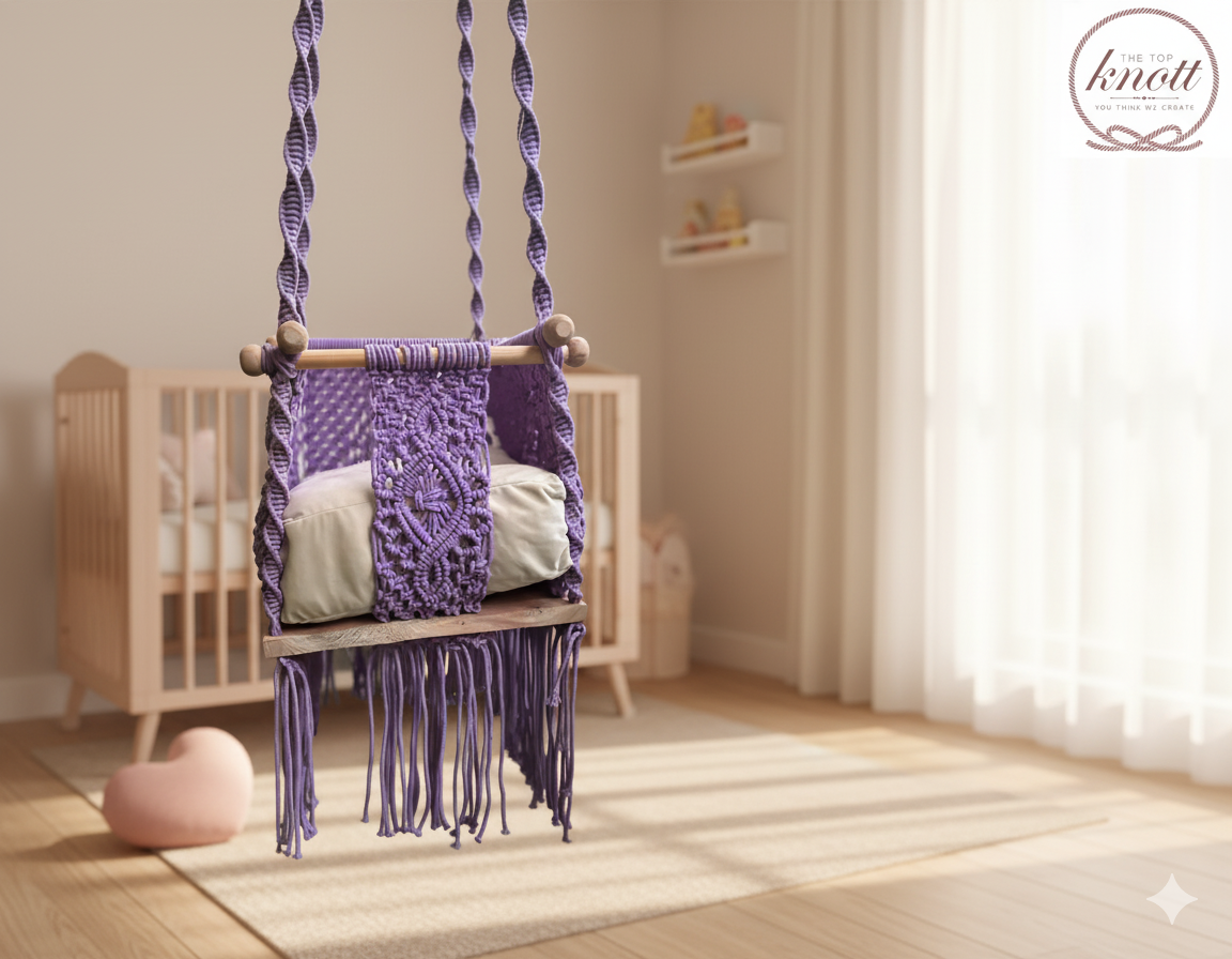 The Top Knott Handcrafted Purple Baby Macrame Swing – Cozy & Stylish Nursery Essential